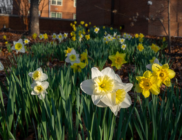 Campus is showing the first signs of spring with budding and blooming flowers.